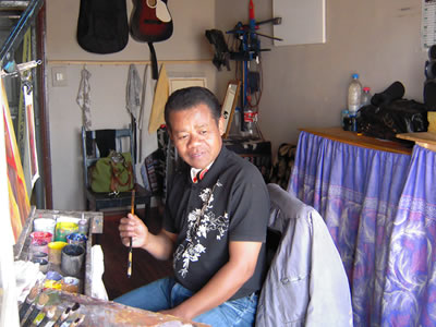 In 1980 he began producing watercolours and nowadays works exclusively in oils. His work is exhibited in Antananarivo, at the Association Rose & Baobab and at the Hotel Vatolahy in Antsirabe.